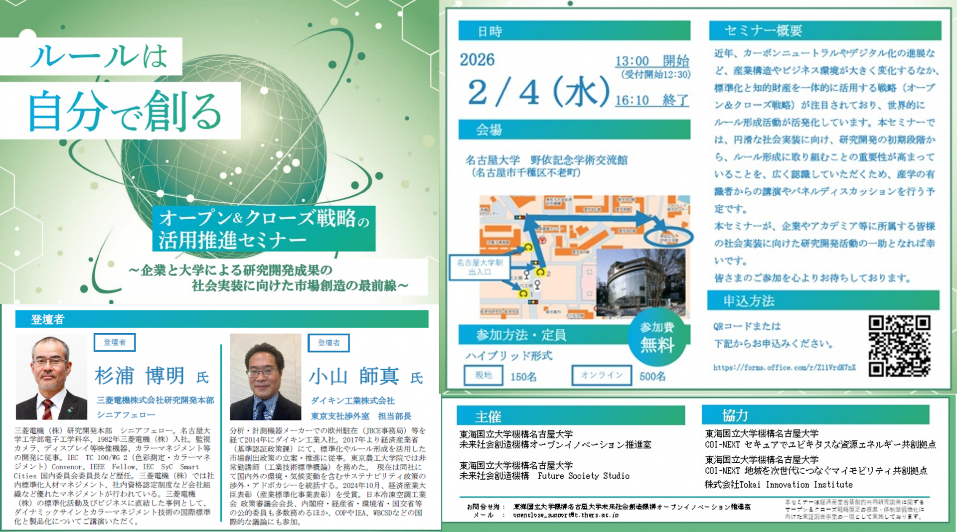 【開催案内】2/4「オープン&クローズ戦略の活用推進セミナー」 ~企業と大学による研究開発成果の社会実装に向けた市場創造の最前線~