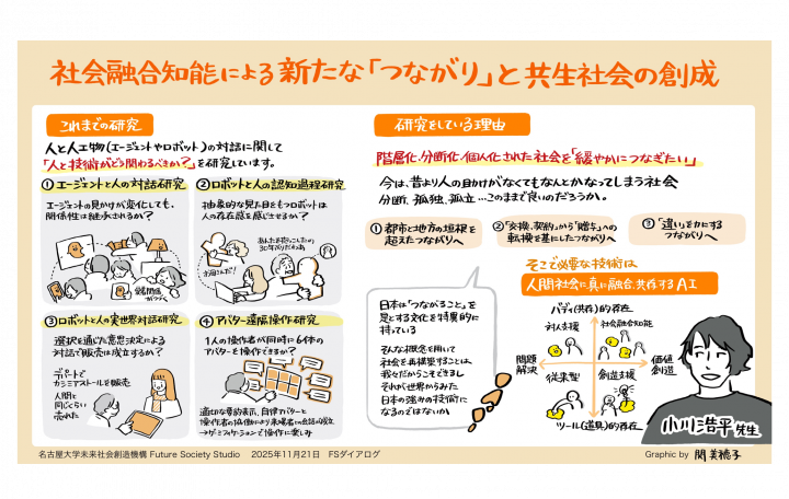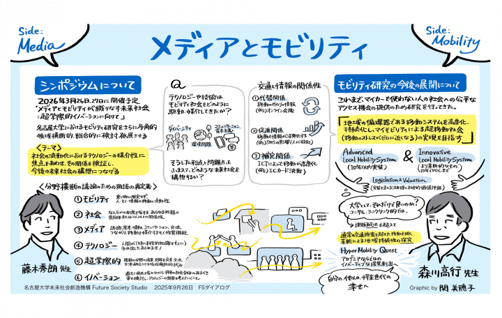 イベント・お知らせ 2026.3.23 2月度ダイアログを開催しました 2026.2.26 【開催案内】3/26-27 FSSシンポジウム「メディアとモビリティが織りなす未来社会:超学際的イノベーションに向けて」 2026.2.2 【開催案内】2/19開催 子どもの経験をつくる移動環境セミナー「子供×学び×移動」を考えるについて 2026.1.26 1月度ダイアログを開催しました 2026.1.13 【開催案内】2/4「オープン&クローズ戦略の活用推進セミナー」 ~企業と大学による研究開発成果の社会実装に向けた市場創造の最前線~ 2026.1.9 12月度ダイアログを開催しました 2025.12.4 11月度ダイアログを開催しました 2025.10.31 10月度ダイアログを開催しました 2025.10.15 9月度ダイアログを開催しました more